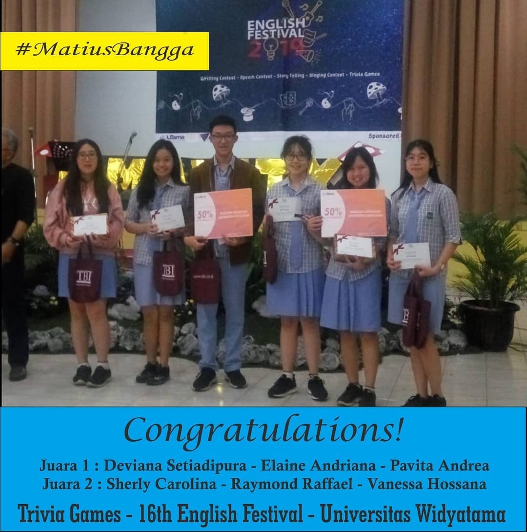 Yang berhasil meraih Juara 1 Lomba Trivia Games dalam 16th English Festival di Universitas Widyatama Bandung.